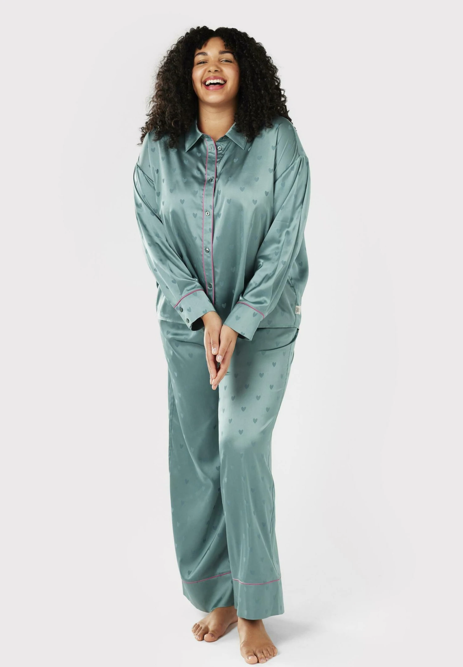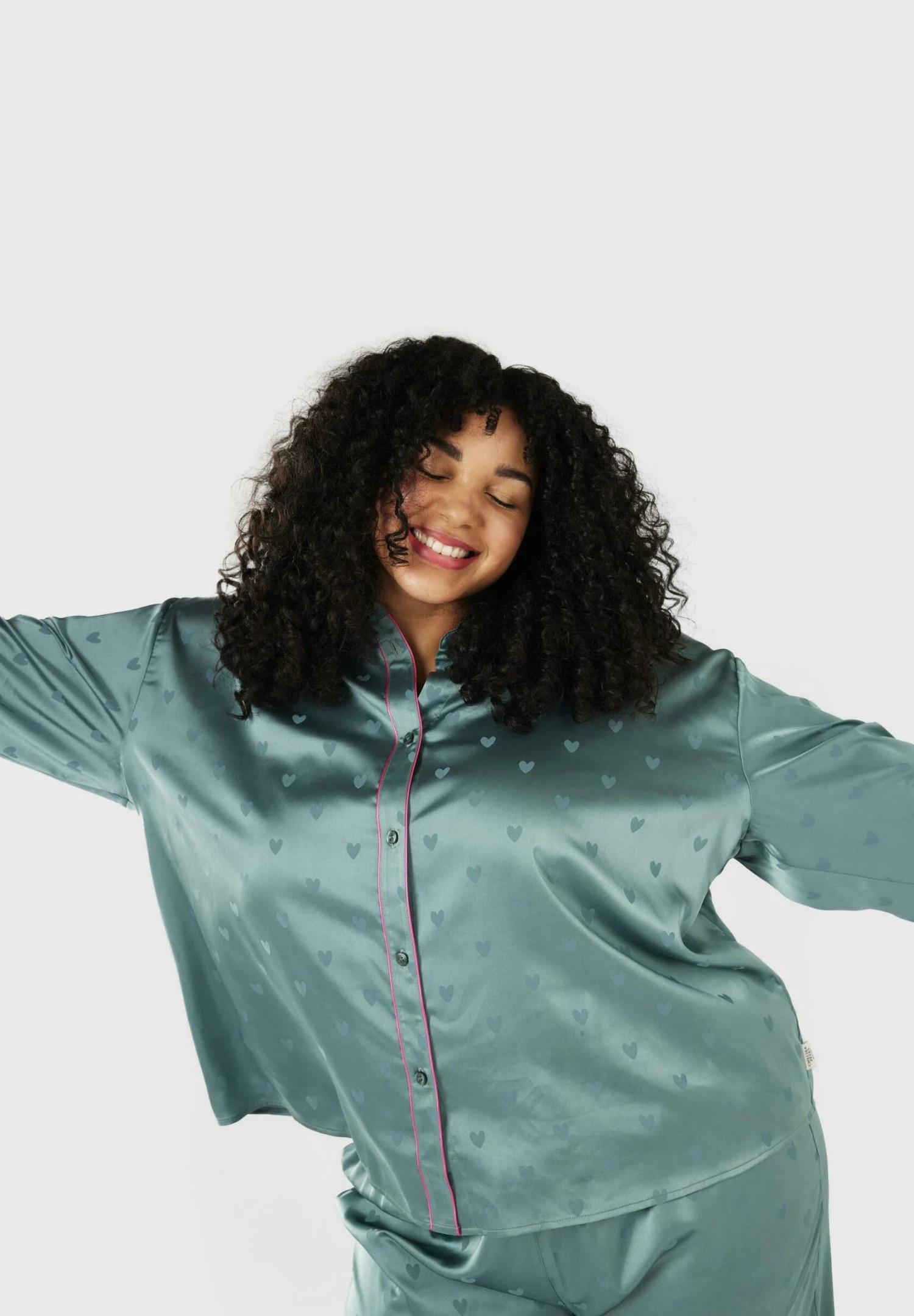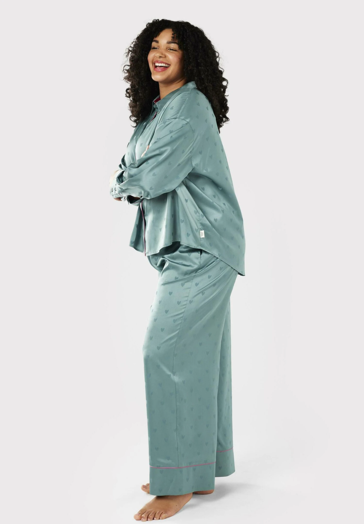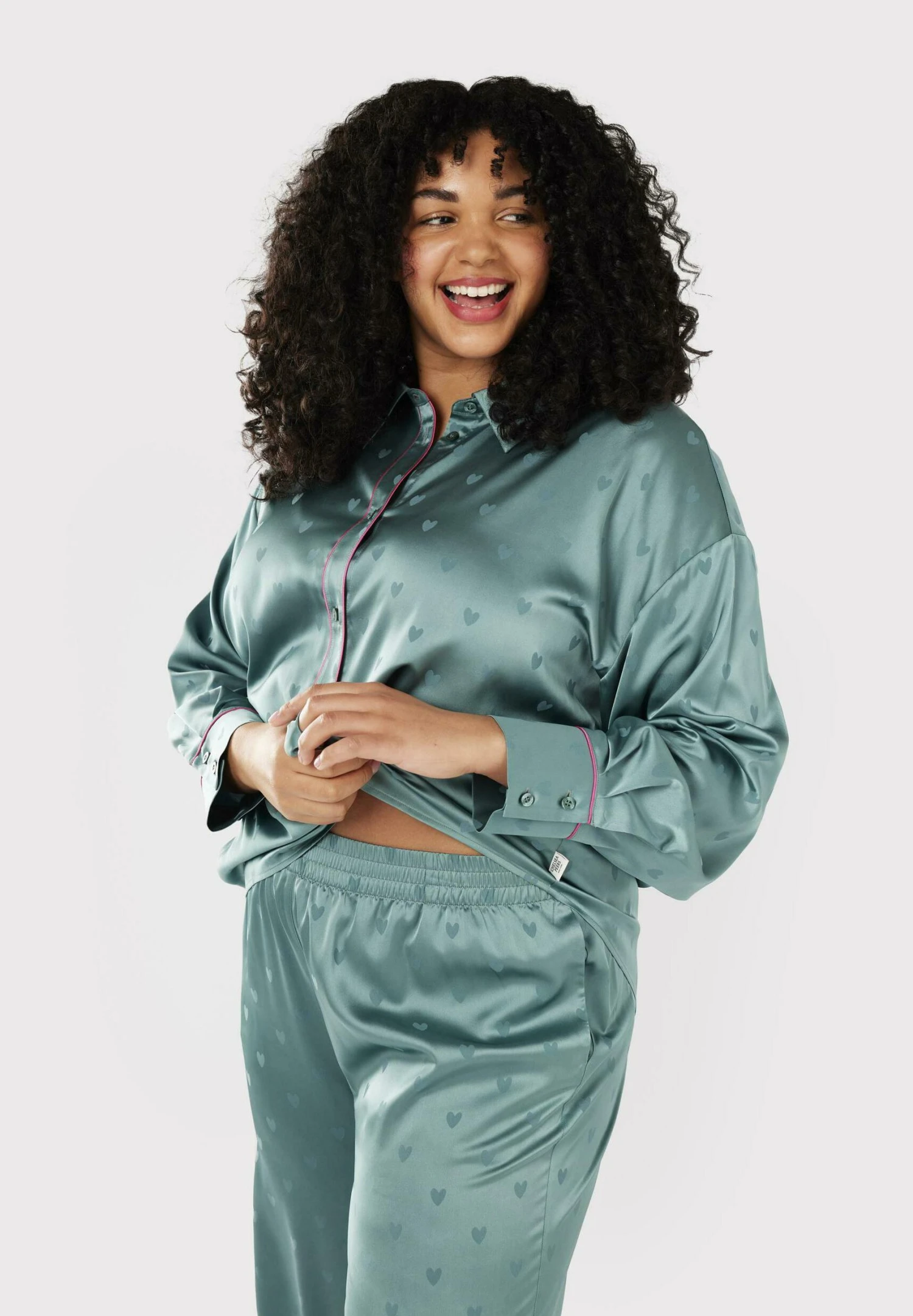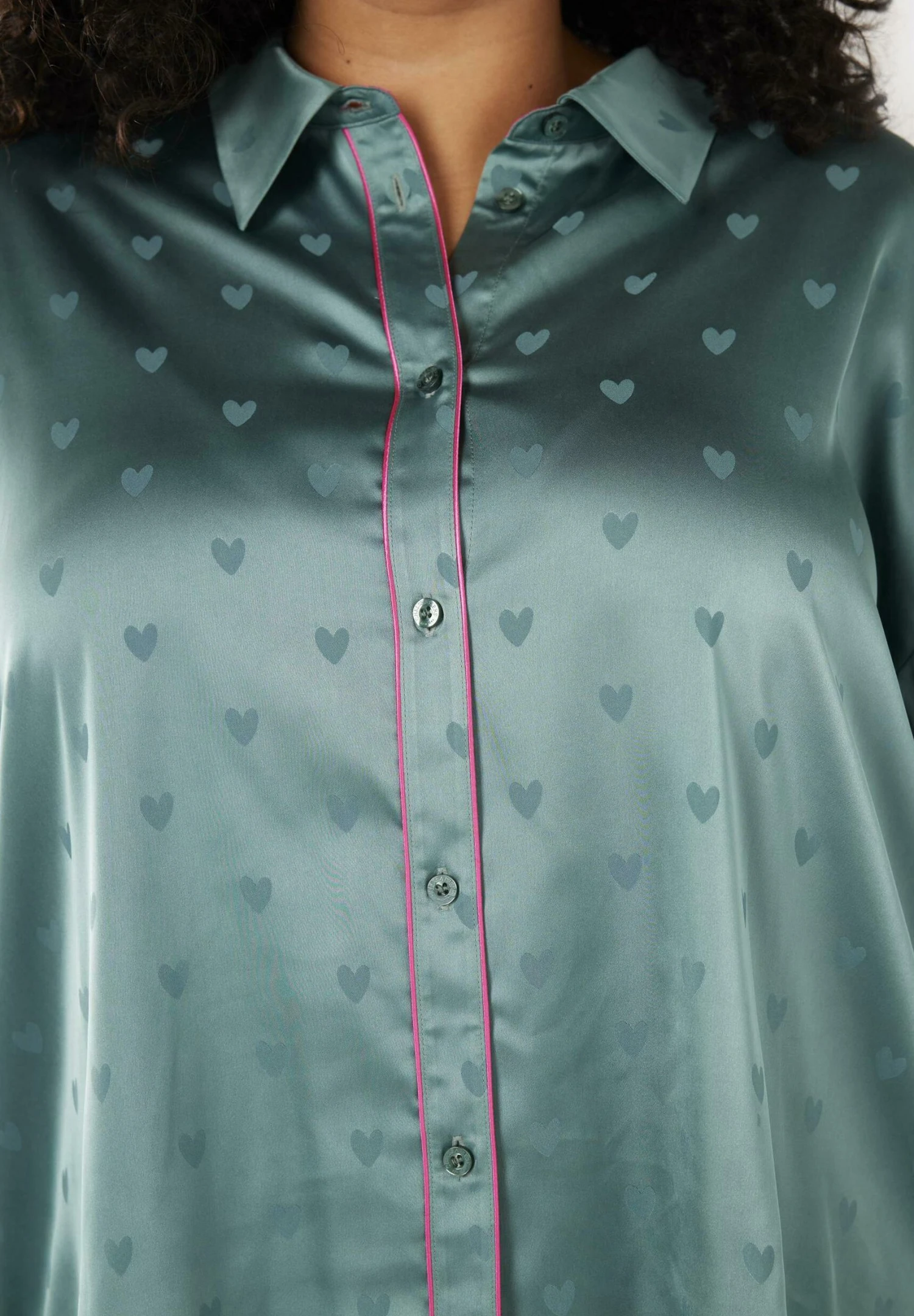 CURVE HEART BUTTON UP LONG – Piżama – Teal