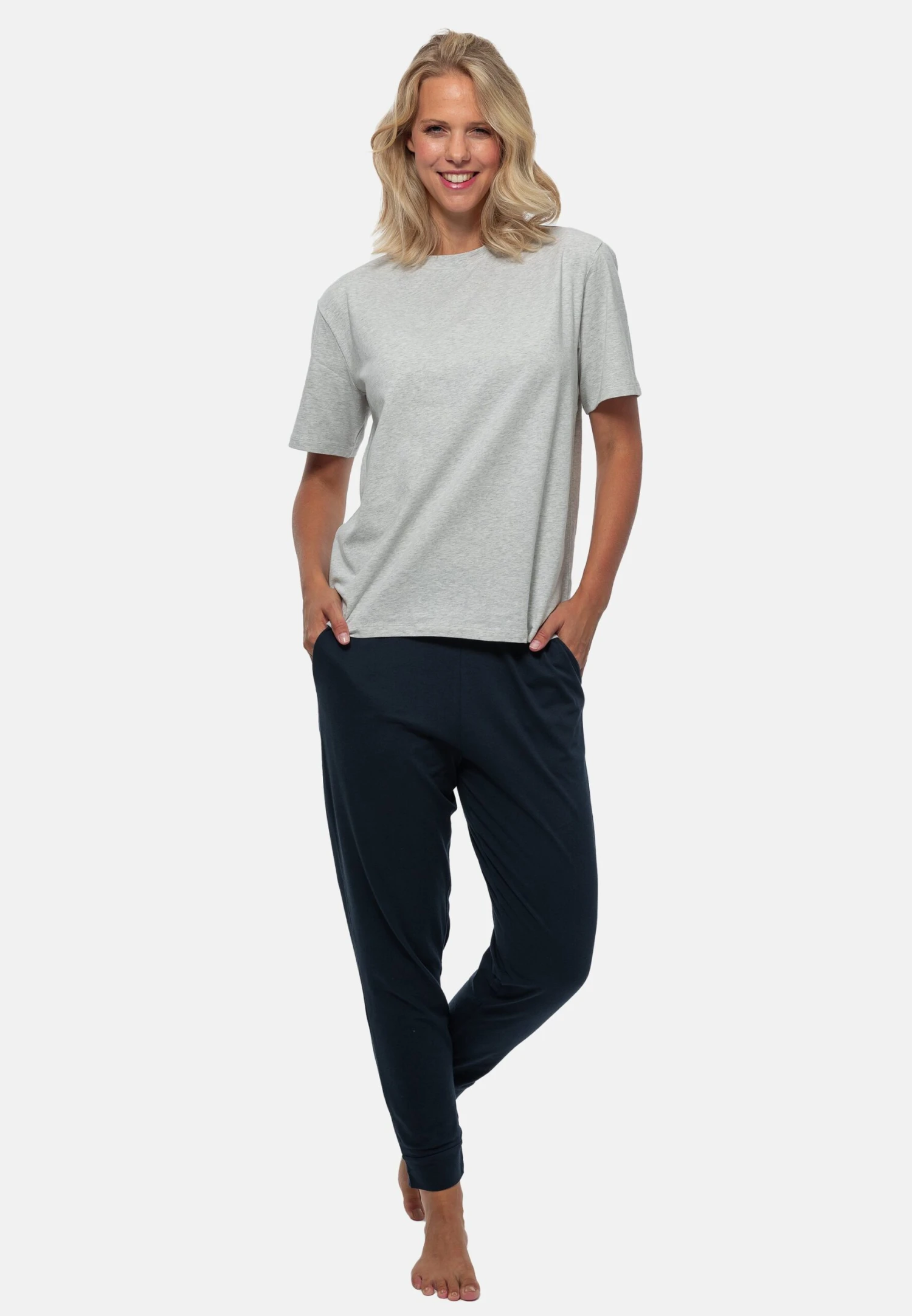 Schiesser SET – Piżama – Dunkelblau Grau
